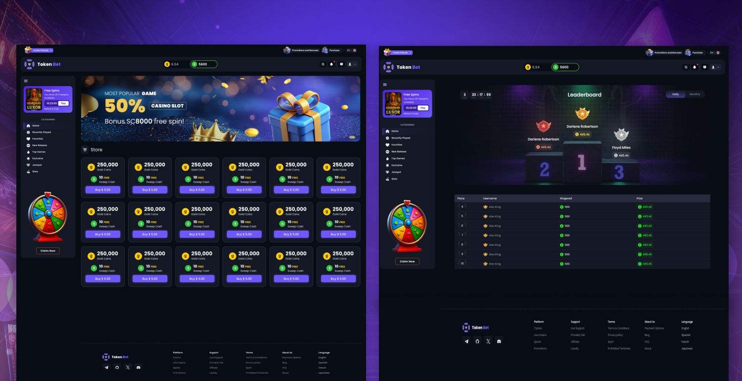 • Designed the overall UI/UX layout for the Casino website, ensuring an intuitive and engaging experience.